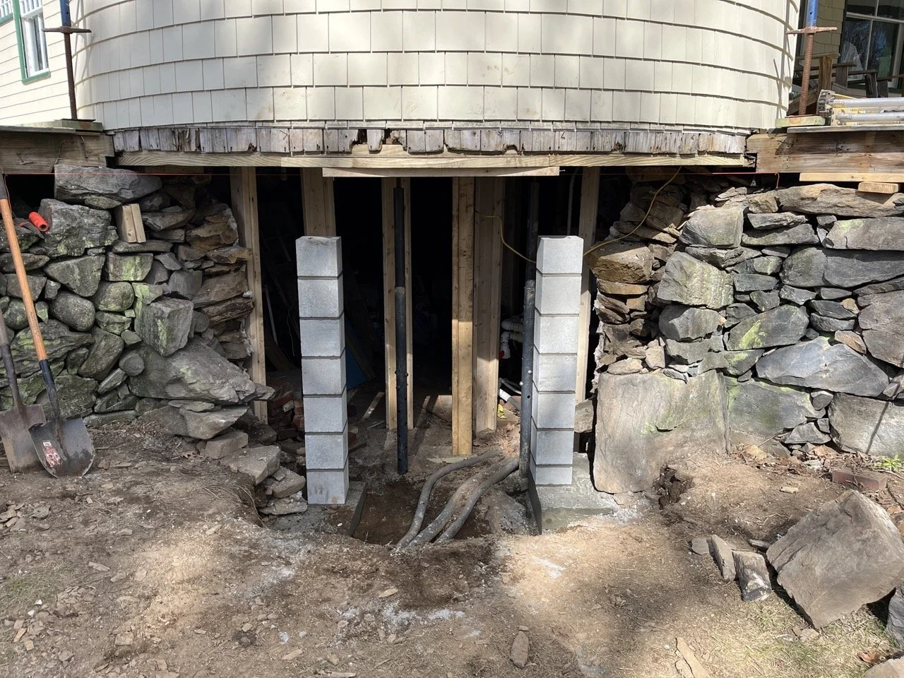 Design shoring to support turret and allow for removal of deteriorated foundation wall.